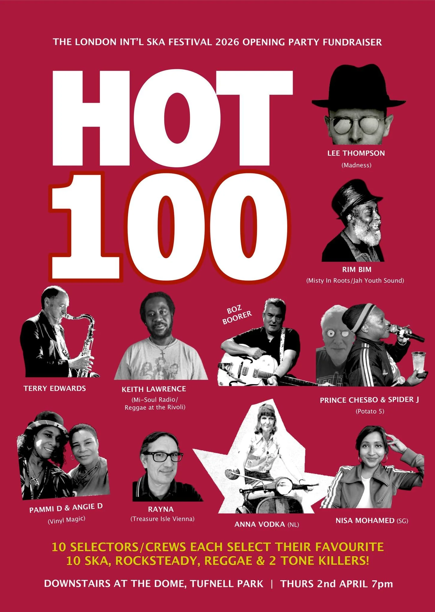 The London Int'l Ska Festival 2026 opening party is set to star our world exclusive HOT100 night on Thursday 2nd April at Downstairs at The Dome, 178 Junction Road, London N19 5QQ. What's more it's a fundraiser to help sustain the festival!