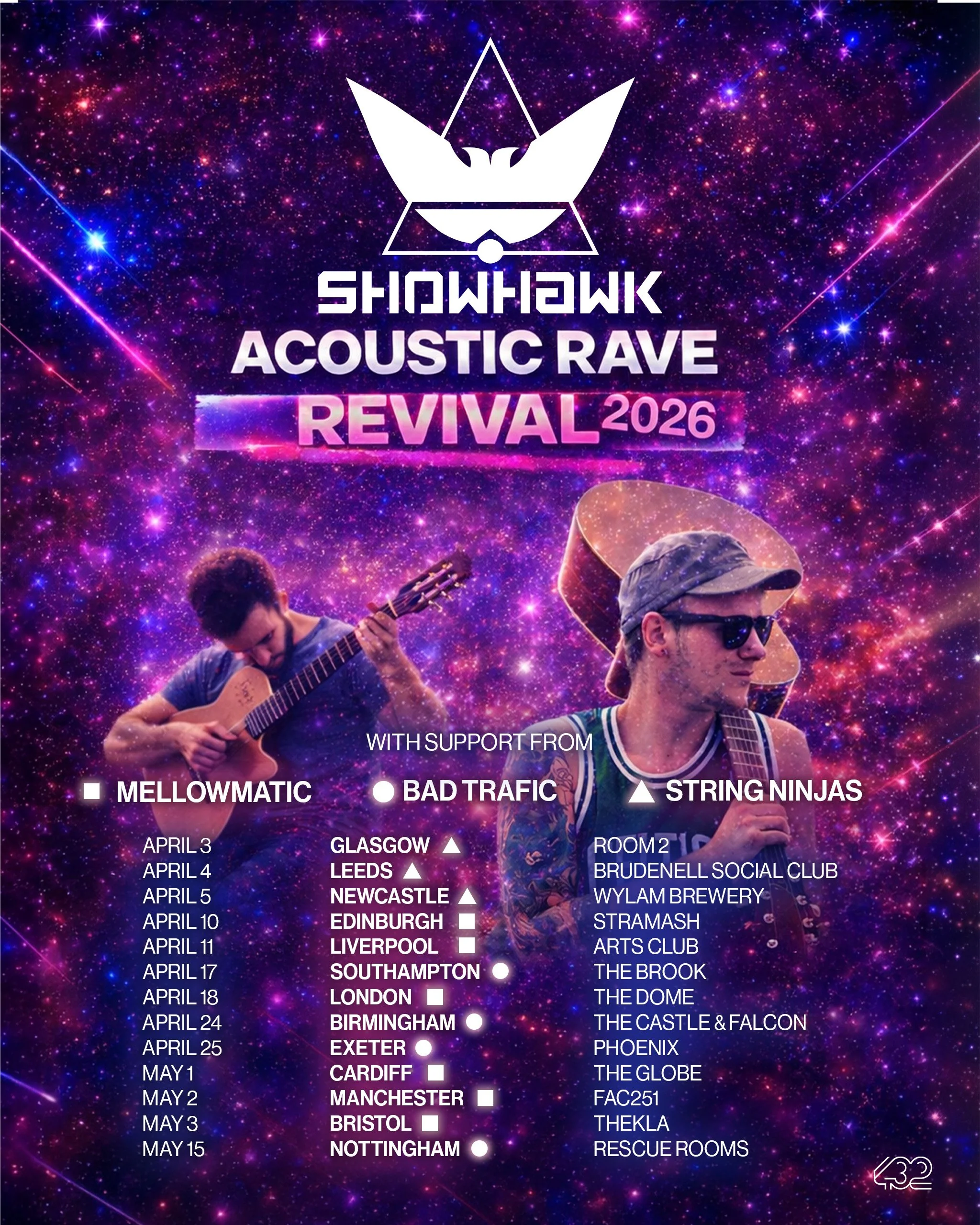 432 Presents SHOWHAWK DUO - Acoustic Rave Revival with support from MELLOWMATIC live at The Dome
