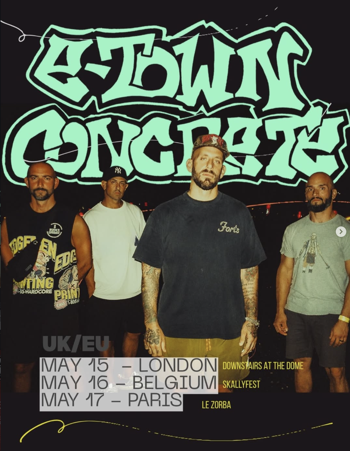 Born from the industrial grit of Elizabeth, New Jersey, E-Town Concrete didn’t just blur the lines between hardcore and hip-hop-they blazed a path that many of today's bands are still following.Formed in the late-’90s, E-Town Concrete pioneered a sound that fused metallic hardcore aggression with hip-hop groove, streetwise lyricism, and undeniable bounce. Long before“crossover” became algorithm-friendly or festival-programmed, E-Town was packing rooms with a style that felt equally at home in underground VFW halls and blasting through car speakers acrossDirty Jerz. Their landmark release The Renaissance (2003) produced anthems like “Mandibles,” “Baptism,”and “So Many Nights”-records that became generational rallying cries and social media memes for hardcore tastemakers. But what once felt ahead of its time now feels prophetic.Over the last several years, a new wave of hardcore bands has exploded-many leaning heavily into the exact fusion of groove-driven riffs, hip-hop cadence, and rhythmic mosh that E-Town established decades ago. From the bounce in modern hardcore breakdowns to the swagger in vocal delivery, the influence is unmistakable.